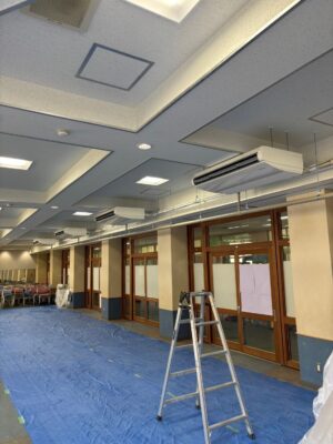 神戸市施設 天吊り5馬力ツインパッケージエアコン新設!