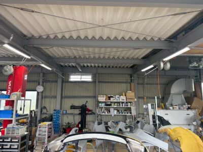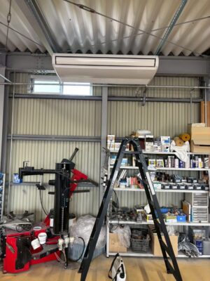 整備工場や倉庫など、高天井・広スペースでの空調改善は、天吊りパッケージエアコンが非常におすすめです。