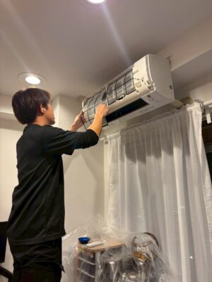 本日は神戸市西区の個人宅にて、ルームエアコンの分解クリーニングを行いました。