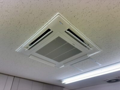 今回は兵庫県加古川市にて、天井カセット形パッケージエアコン(天カセ)3台の更新工事を行いました。